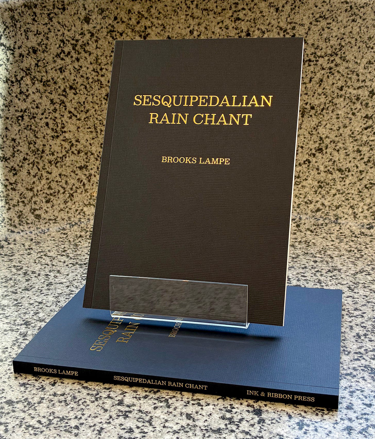 We’ve just received the first image from the printer of our debut poetry book, Sesquipedalian Rain Chant by Brooks Lampe